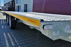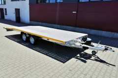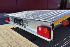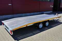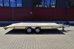 Uniwersalna przyczepa przeznaczona do przewozu aut o płaskiej powierzchni ładunkowej. Możliwość regulacji szerokości rozstawienia najazdów ładunkowych pozwala na wygodny załadunek także quadów, motocykli, maszyn budowlanych czy małych ciągników ogrodniczych. Wyposażona na etapie produkcji w pełną podłogę wykonaną z ALU Ryfel 2 mm (na zamówienie sklejka wodoodporna antypoślizgowa 9 mm).