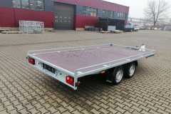Uniwersalna przyczepa przeznaczona do przewozu różnych towarów. Powierzchnia ładunkowa wypełniona antypoślizgową sklejką wodoodporną o grubości 15 mm. Podłoga wyposażona jest w 8 uchwytów ładunkowych. Możliwość regulacji szerokości rozstawienia najazdów ładunkowych pozwala na wygodny załadunek wielu pojazdów kołowych.