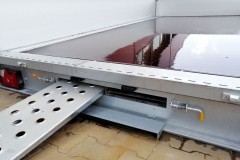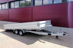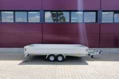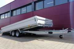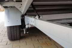 Przyczepa z uchylną przestrzenią ładunkową oraz burtami aluminiowymi h-400 mm. Koła 10" oraz podjazdy o długości 1,2 m. Oparta na podzespołach renomowanej firmy AL-KO. Charakteryzuje się dużą wytrzymałością i niezawodnością.