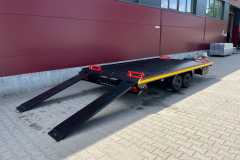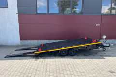 Przyczepa przeznaczona do przewozu aut i motocykli. Posiada system uchylnej platformy ładunkowej – siłownik gazowy. Przestrzeń ładunkowa wypełniona panelami aluminiowymi z otworami LOHR o wymiarach 4,0 x 2,1m DMC: 2500/2700 kg lub 4,5 x 2,1m DMC: 2700/3000kg. Podnoszenie platformy lawety za pomocą amortyzatorów gazowych pozwala na bardzo wygodny załadunek - kąt najazdu 8,5°. Przyczepa wyposażona jest w podjazdy ALUMINIOWE 1,8 m x 35 cm. Koła aluminiowe w rozmiarze 10" w umieszczone pod powierzchnią ładunkową pozwoliły na obniżenie środka ciężkości lawety co skutkuje wygodnym i stabilnym prowadzeniem się lawety.