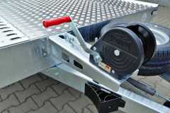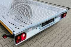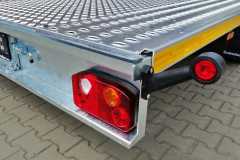 Uniwersalna przyczepa przeznaczona do przewozu aut o płaskiej powierzchni ładunkowej. Możliwość regulacji szerokości rozstawienia najazdów ładunkowych pozwala na wygodny załadunek także quadów, motocykli, maszyn budowlanych czy małych ciągników ogrodniczych. Wyposażona na etapie produkcji w pełną podłogę wykonaną z ALU Ryfel 2 mm (na zamówienie sklejka wodoodporna antypoślizgowa 9 mm).